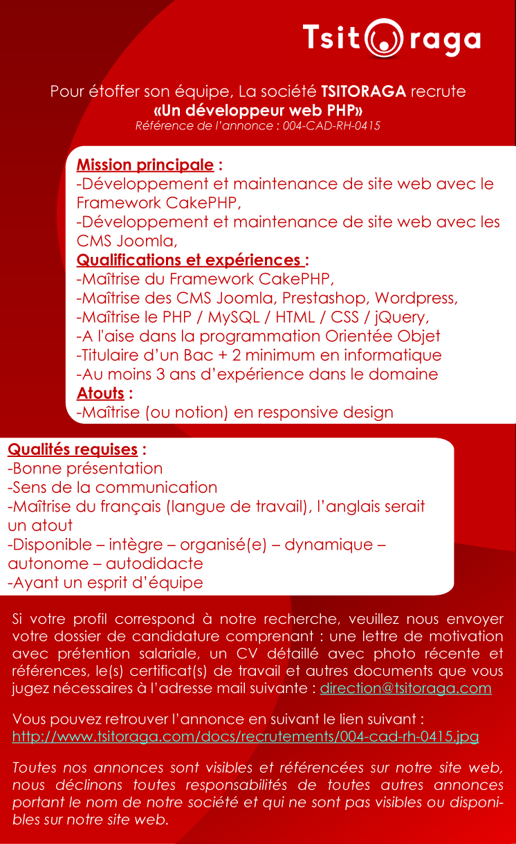 Un (1) developpeur Web PHP